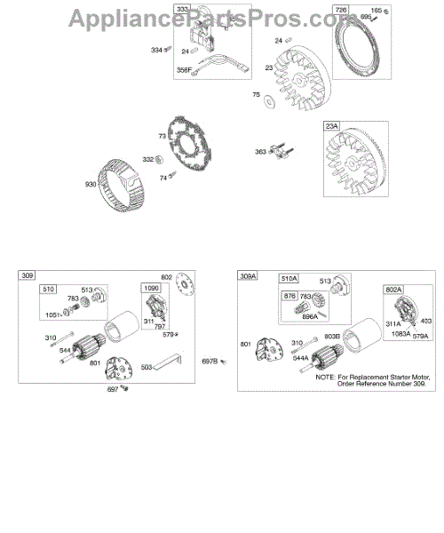 Parts for Briggs & Stratton 19G437-1190-E1: Electric Starter, Flywheel Parts
