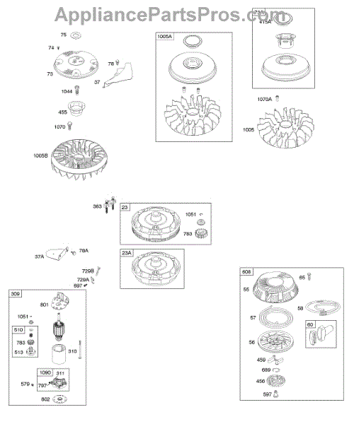 Parts for Briggs & Stratton 215907-0025-G1: Electric Starter, Flywheel, Rewind Starter Parts