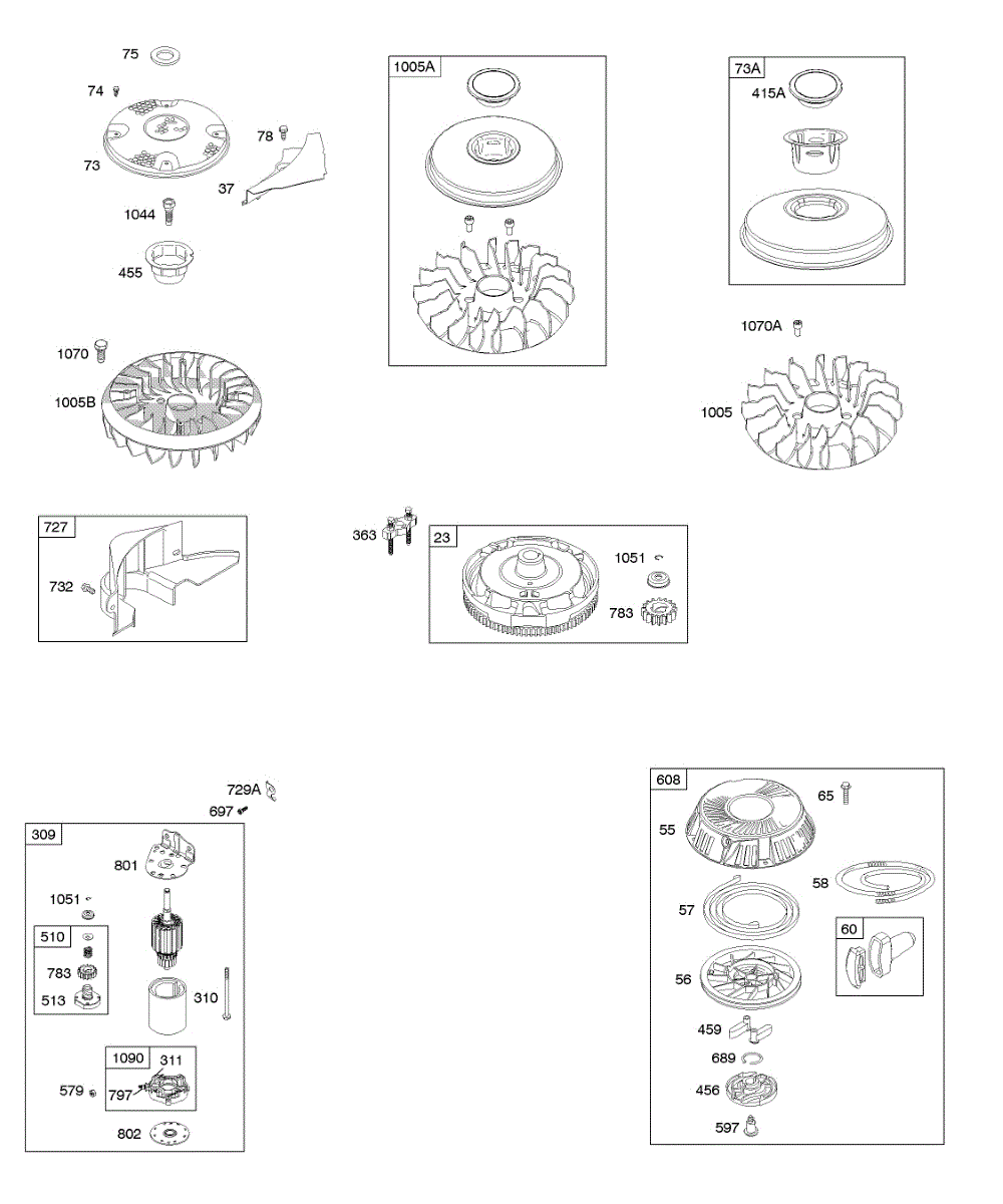 Parts for Briggs & Stratton 21A877-0121-B1: Electric Starter, Flywheel, Rewind Starter Parts