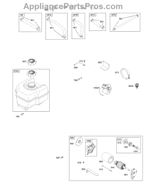 Parts for Briggs & Stratton 204412-0171-E1: Electric Starter, Fuel Supply Parts