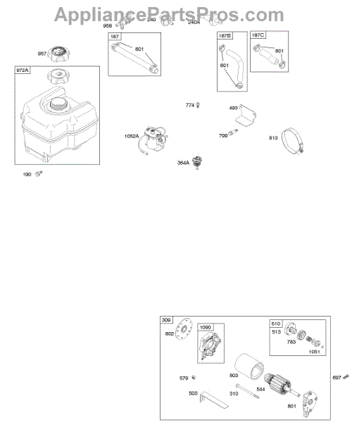 Parts for Briggs & Stratton 207437-0132-E1: Electric Starter, Fuel Supply Parts