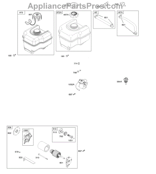Parts for Briggs & Stratton 210315-0137-B1: Electric Starter, Fuel Supply Parts