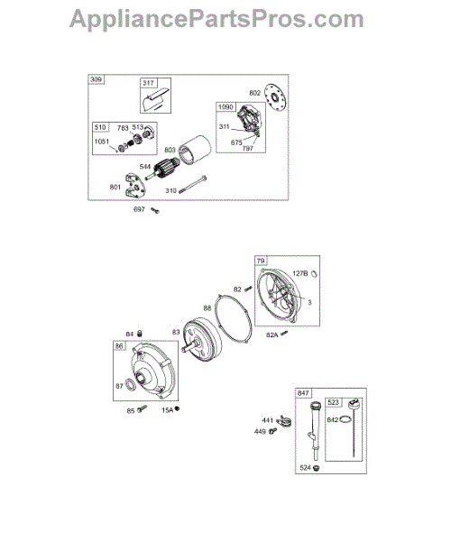 Parts for Briggs & Stratton 113432-0116-E1: Electric Starter, Gear Reducer, Oil Group Parts