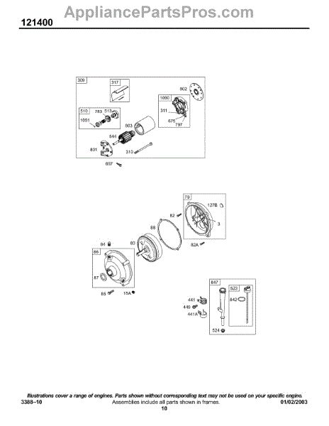 Parts for Briggs & Stratton 121412-0145-E2: Electric Starter, Gear Reducer Group, Oil Group Parts