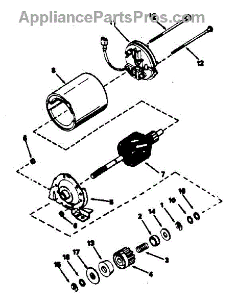 Parts for Craftsman 143384152: Electric Starter Motor No. 34934 Parts