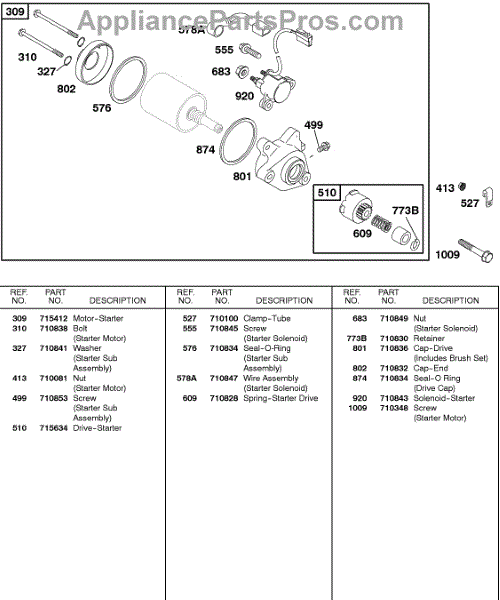 Parts for Briggs & Stratton 115432-0111-01: Electric Starter Parts