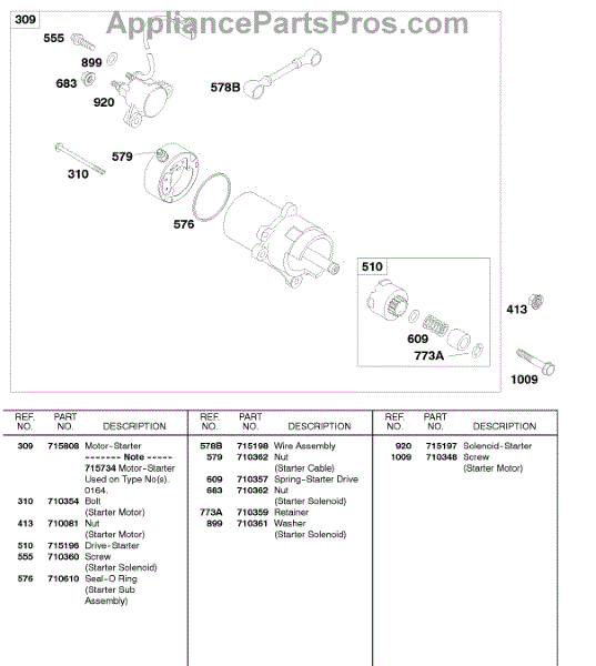 Parts for Briggs & Stratton 185437-0303-E9: Electric Starter Parts