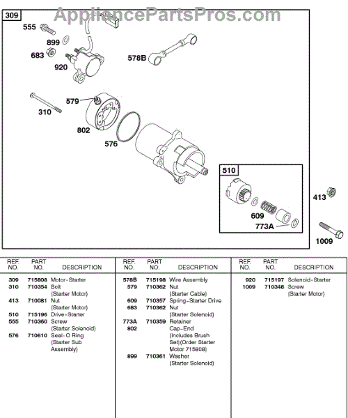 Parts for Briggs & Stratton 187432-0114-B1: Electric Starter Parts