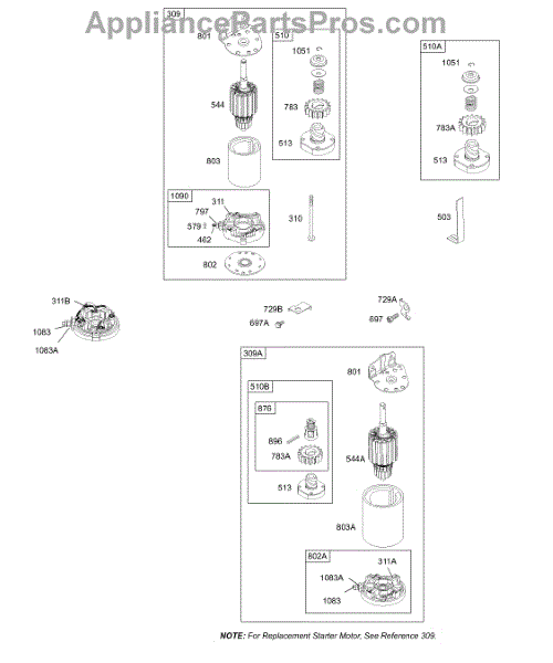 Parts for Briggs & Stratton 28M707-0130-01: Electric Starter Parts