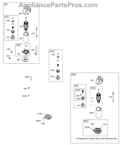 Parts for Briggs & Stratton 28N707-1129-E2: Electric Starter Parts