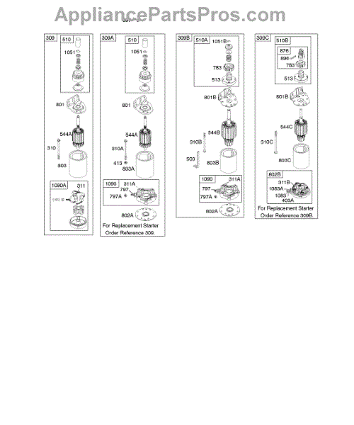 Parts for Briggs & Stratton 351777-1125-A1: Electric Starter Parts