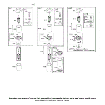 Parts for Briggs & Stratton 42A707-1623-99: Electric Starter Parts
