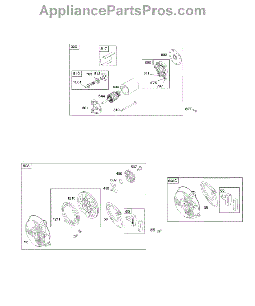Parts for Briggs & Stratton 121212-0113-E1: Electric Starter, Rewind Starter Parts