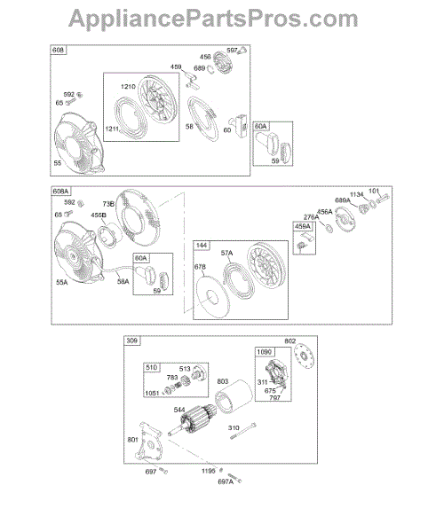 Parts for Briggs & Stratton 133432-1173-E1: Electric Starter, Rewind Group Parts