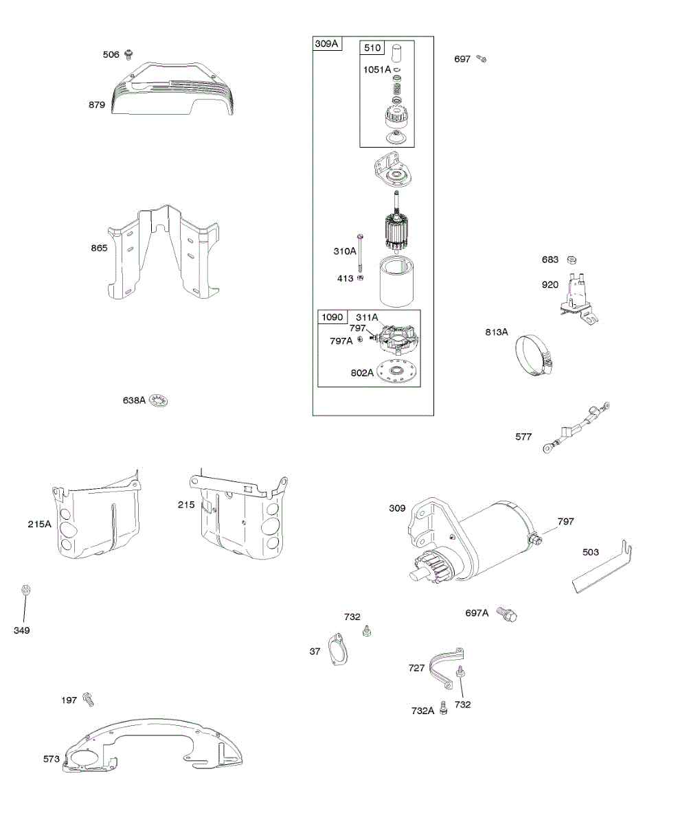 Parts for Briggs & Stratton 358772-3045-G1: Electric Starter, Shrouds Parts