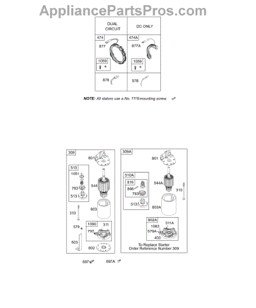 Parts for Briggs & Stratton 194707-4525-A1: Electric Starter, Stator Parts