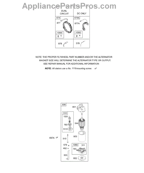 Parts for Briggs & Stratton 197702-1015-E1: Electric Starter, Stator Parts