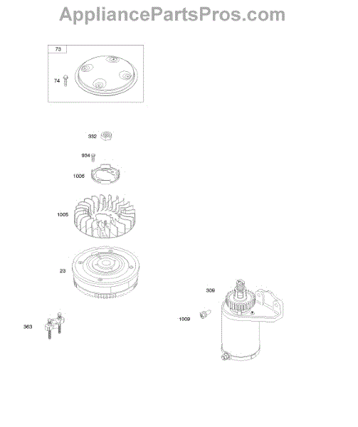 Parts for Briggs & Stratton 385877-0001-B1: Electric Starters, Exhaust Manifold, Flywheel Parts