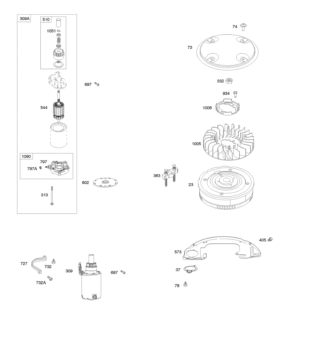 Parts for Briggs & Stratton 359775-0112-E2: Electric Starters, Flywheel, Rotating Screen Parts
