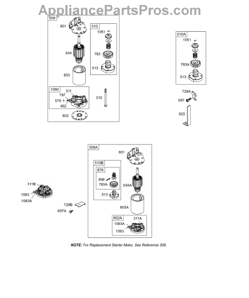 Parts for Briggs & Stratton 289707-0115-01: Electric Starters Parts