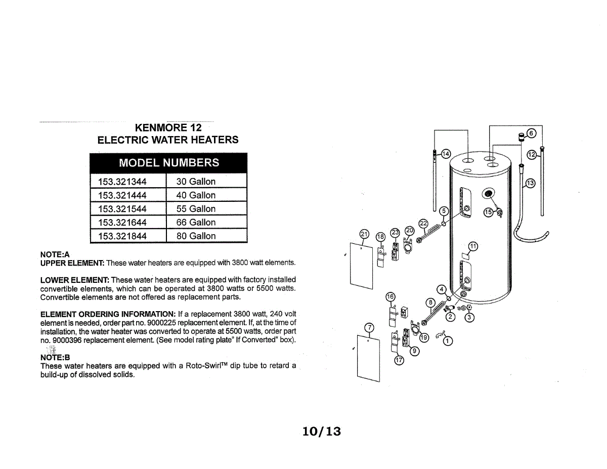 Parts for Kenmore 153.321644 (153321644, 153 321644): Electric Water Heater Parts