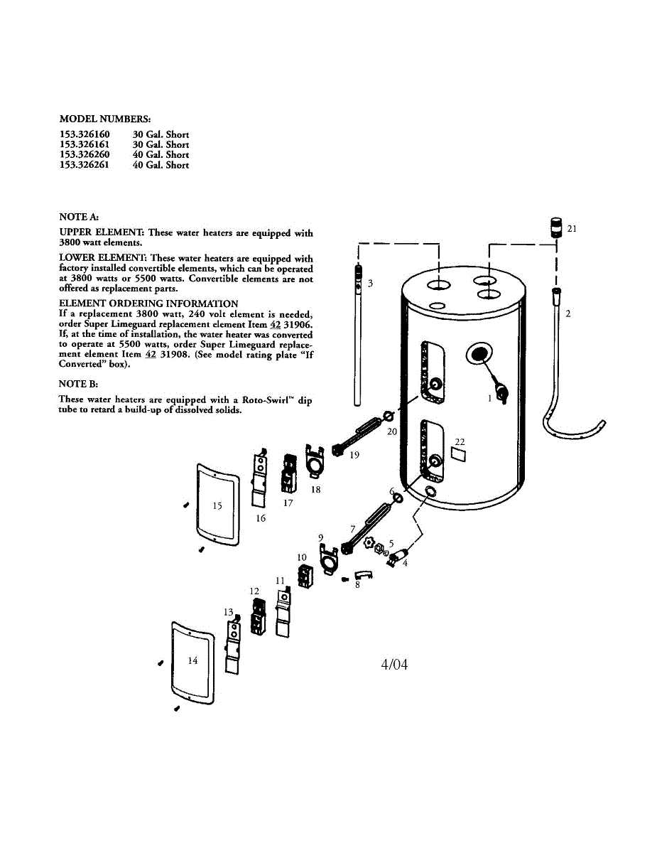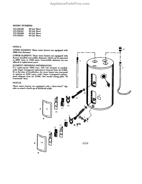 Parts for Kenmore 153.326160 (153326160, 153 326160): Electric Water Heater Parts