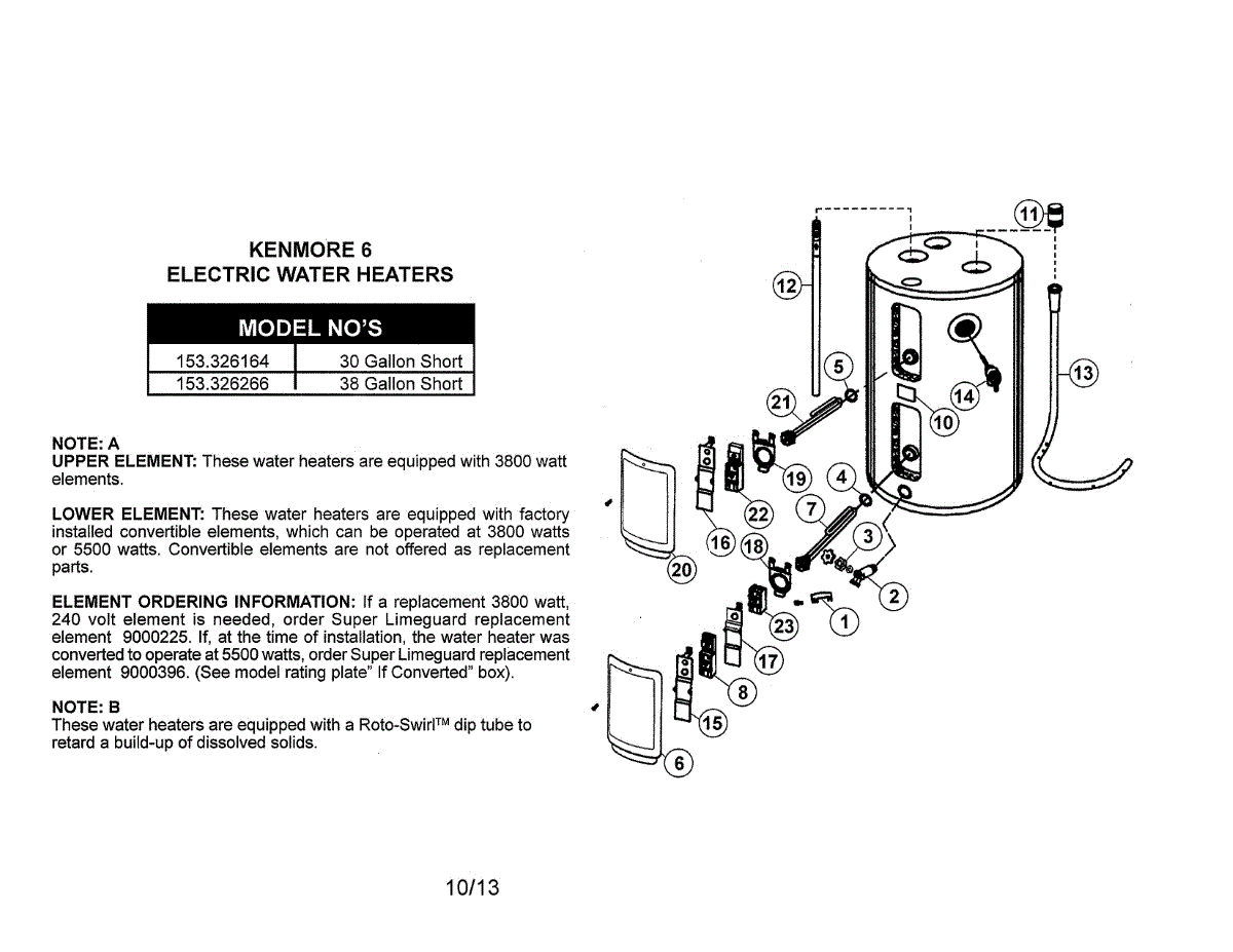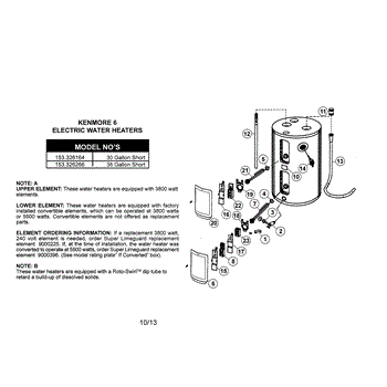 Parts for Kenmore 153.326164 (153326164, 153 326164): Electric Water Heater Parts