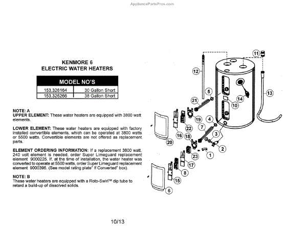 Parts for Kenmore 153.326266 (153326266, 153 326266): Electric Water Heater Parts