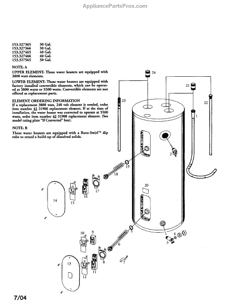 Parts for Kenmore 153.327565 (153327565, 153 327565): Electric Water Heater Parts
