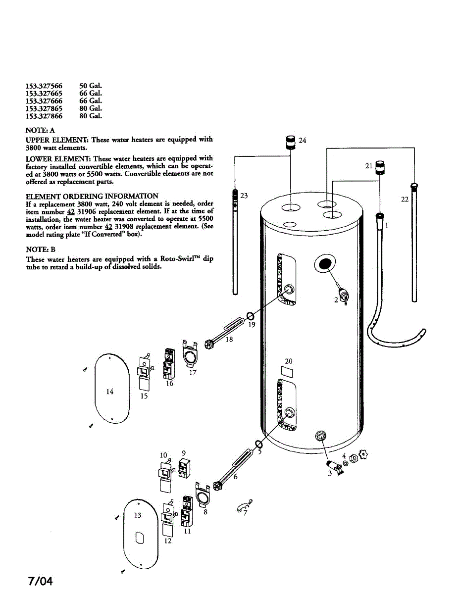 Parts for Kenmore 153.327666 (153327666, 153 327666): Electric Water Heater Parts