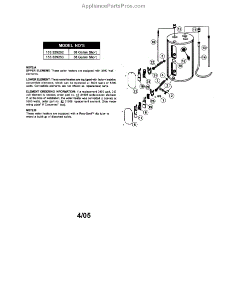 Parts for Kenmore 153.329263 (153329263, 153 329263): Electric Water Heater Parts