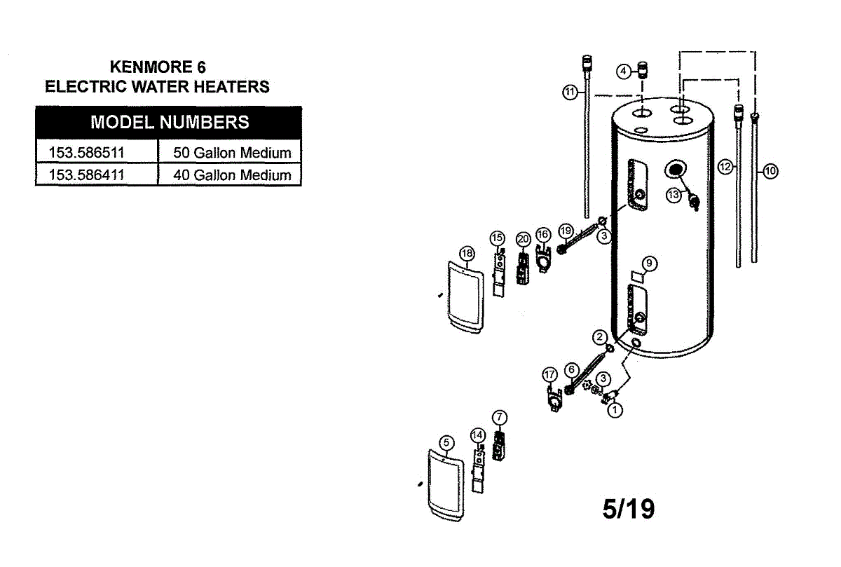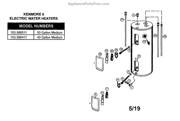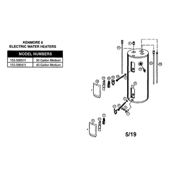 Parts for Kenmore 153.586511 (153586511, 153 586511): Electric Water Heater Parts
