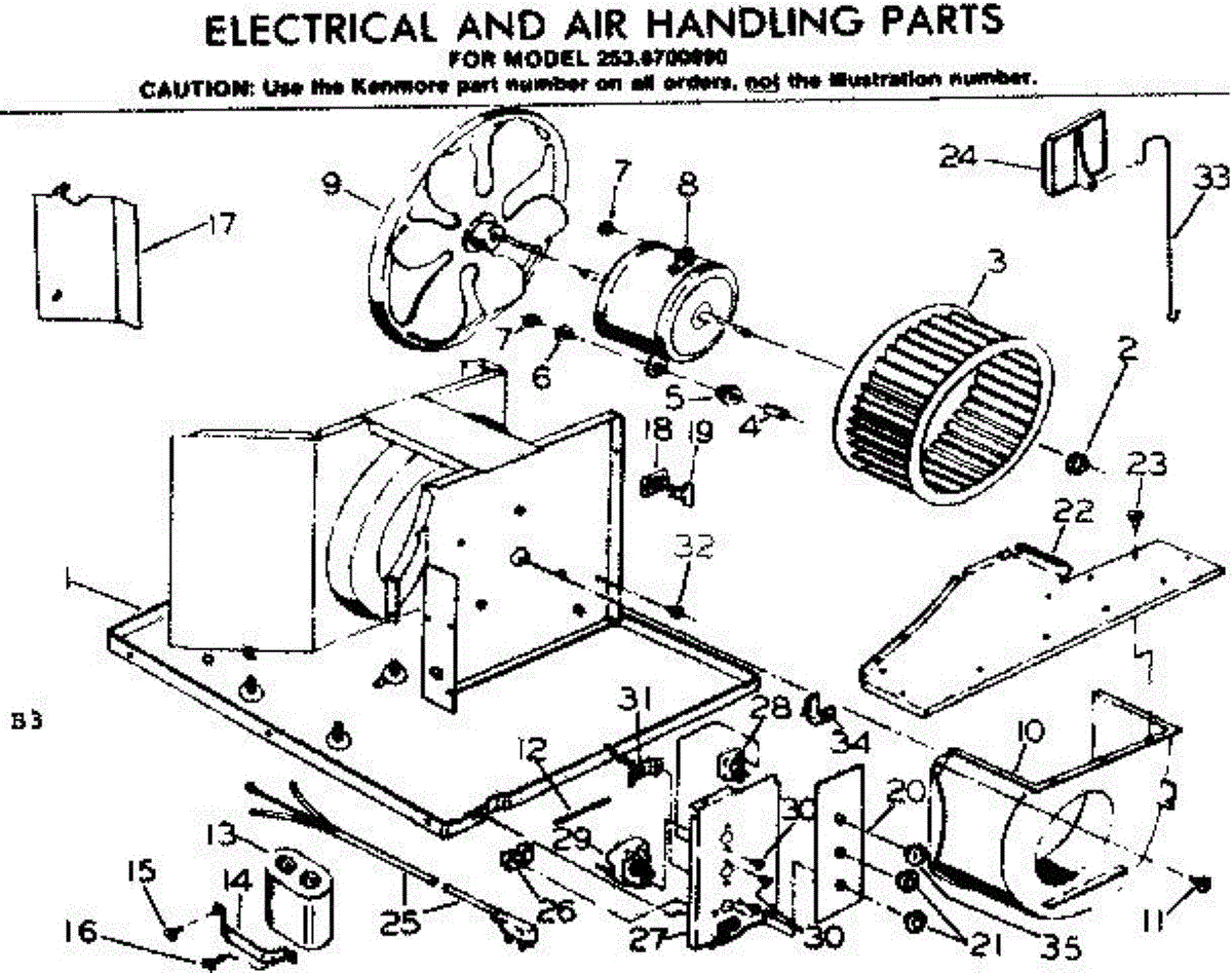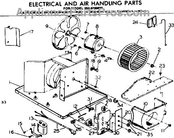 Parts for Kenmore 253.8700890 (2538700890, 253 8700890): Electrical And Air Handling Parts