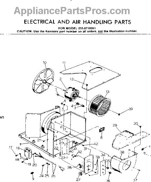 Parts for Kenmore 253.8710991 (2538710991, 253 8710991): Electrical & Air Handling Parts