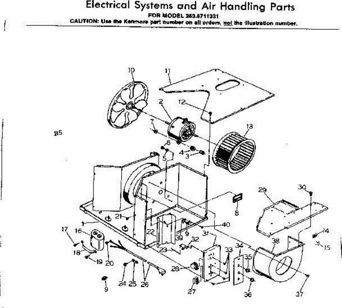 Parts for Kenmore 253.8711331 (2538711331, 253 8711331): Electrical & Air Handling Parts