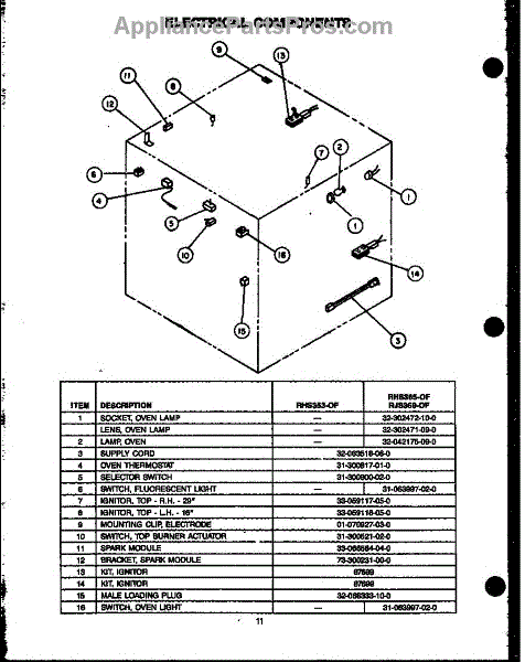 Parts for Caloric RHS353-OF: Electrical Components Parts