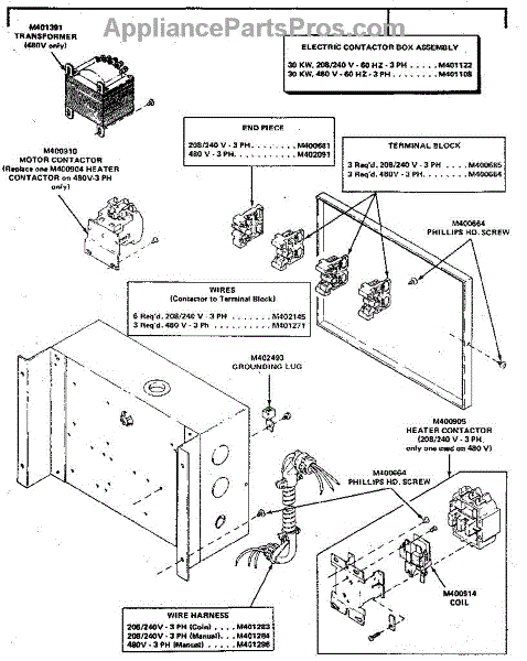 Parts for Kenmore 99965CG: Electrical Contactor Box Assembly Parts