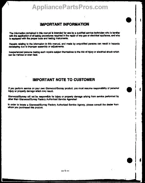 Electric Repair Parts List - B Series