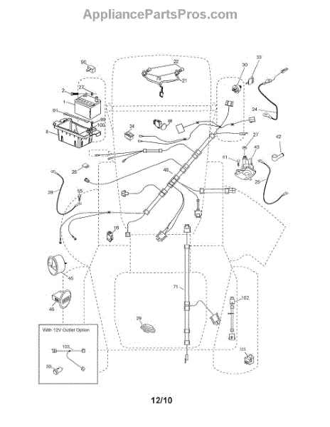 This part is a switch in the control system of a lawn tractor or lawnmower that activates the central electrical systems. Known as a starter switch, it is responsible for turning the power on for the mower. If the engine will not start and the electric starter does not engage, the ignition switch may be defective and needs to be replaced. To check an ignition switch, use an ohmmeter to determine if there is any connection between the S and B terminals. If no connection is detected, the ignition switch is the problem. Replacing an old or malfunctioning ignition switch on a riding mower is quick and easy. First, disconnect the battery and remove the bolt connecting it to the negative cable. Remove the ignition switch and disconnect the wire harness attached to the back. Install the new ignition switch, connect the wire harness, and then reconnect the battery. This part is compatible with specific products from popular brands like Ariens, Craftsman, Husqvarna, Murray, Poulan, Ryobi, and Weed Eater. It is a genuine OEM part sourced directly from the manufacturer and is sold individually.