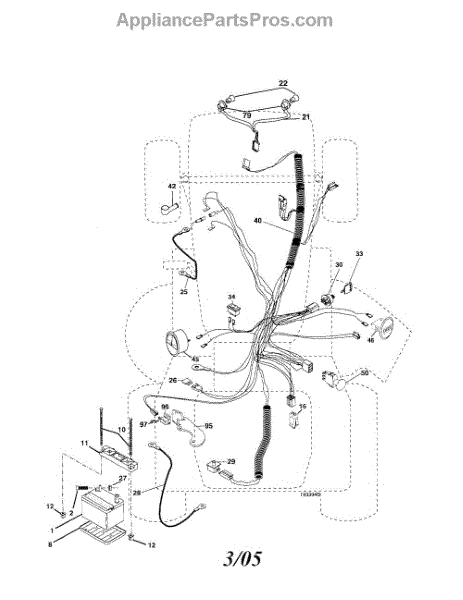 This part is a switch in the control system of a lawn tractor or lawnmower that activates the central electrical systems. Known as a starter switch, it is responsible for turning the power on for the mower. If the engine will not start and the electric starter does not engage, the ignition switch may be defective and needs to be replaced. To check an ignition switch, use an ohmmeter to determine if there is any connection between the S and B terminals. If no connection is detected, the ignition switch is the problem. Replacing an old or malfunctioning ignition switch on a riding mower is quick and easy. First, disconnect the battery and remove the bolt connecting it to the negative cable. Remove the ignition switch and disconnect the wire harness attached to the back. Install the new ignition switch, connect the wire harness, and then reconnect the battery. This part is compatible with specific products from popular brands like Ariens, Craftsman, Husqvarna, Murray, Poulan, Ryobi, and Weed Eater. It is a genuine OEM part sourced directly from the manufacturer and is sold individually.