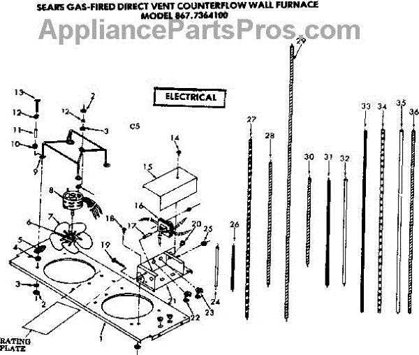 Sears Gas-Fired Direct Vent Counterflow Wall Furnace