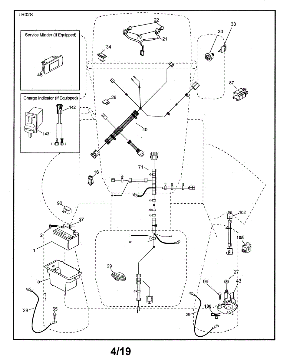 Wire harness assembly for riding mowers and lawn tractors. Transmits electrical currents throughout the machine. Replace if wires are frayed or damaged.