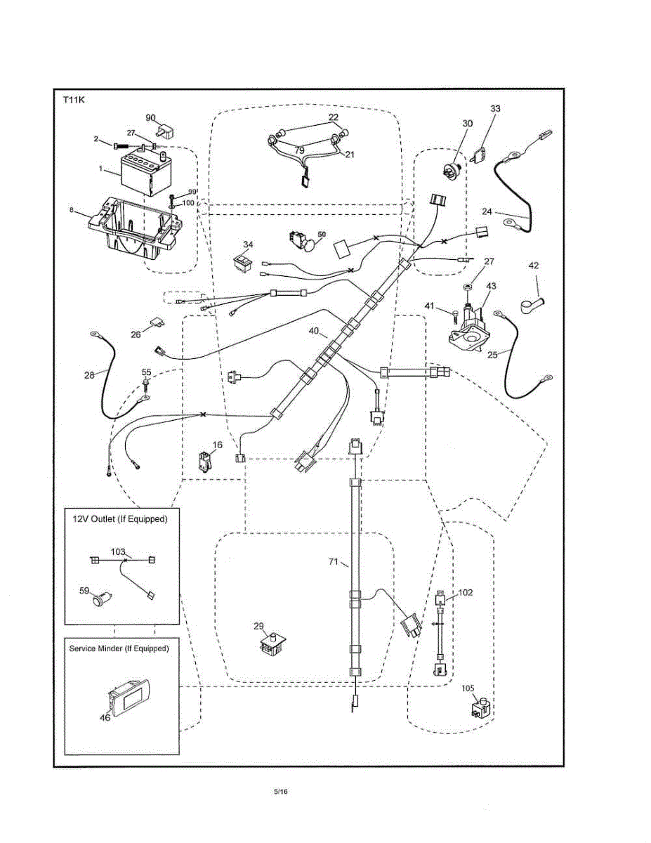 Chassis wiring harness for riding lawn tractors. Replaces damaged, frayed, or corroded wire harnesses. Essential when existing harness is broken or worn.