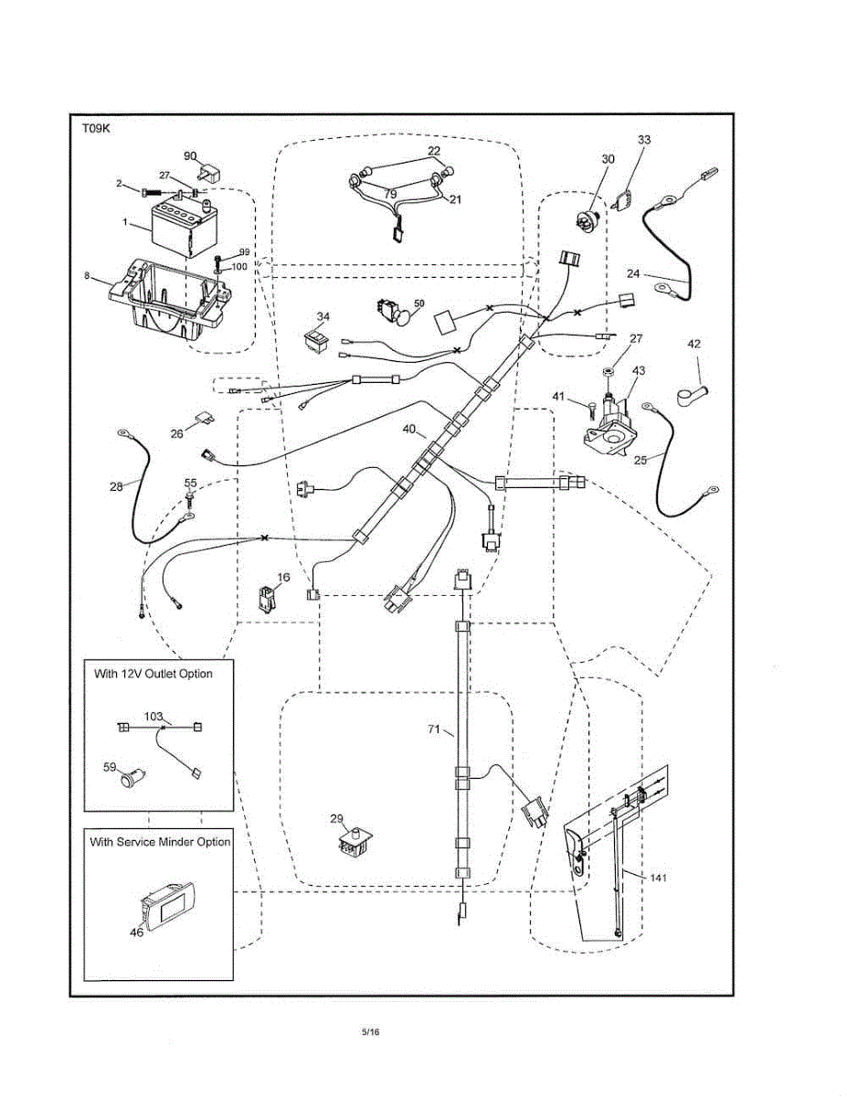 Chassis wiring harness for riding lawn tractors. Replaces damaged, frayed, or corroded wire harnesses. Essential when existing harness is broken or worn.