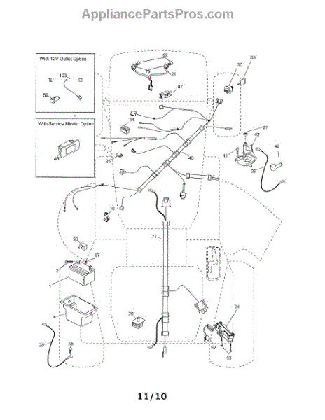 This part is a switch in the control system of a lawn tractor or lawnmower that activates the central electrical systems. Known as a starter switch, it is responsible for turning the power on for the mower. If the engine will not start and the electric starter does not engage, the ignition switch may be defective and needs to be replaced. To check an ignition switch, use an ohmmeter to determine if there is any connection between the S and B terminals. If no connection is detected, the ignition switch is the problem. Replacing an old or malfunctioning ignition switch on a riding mower is quick and easy. First, disconnect the battery and remove the bolt connecting it to the negative cable. Remove the ignition switch and disconnect the wire harness attached to the back. Install the new ignition switch, connect the wire harness, and then reconnect the battery. This part is compatible with specific products from popular brands like Ariens, Craftsman, Husqvarna, Murray, Poulan, Ryobi, and Weed Eater. It is a genuine OEM part sourced directly from the manufacturer and is sold individually.