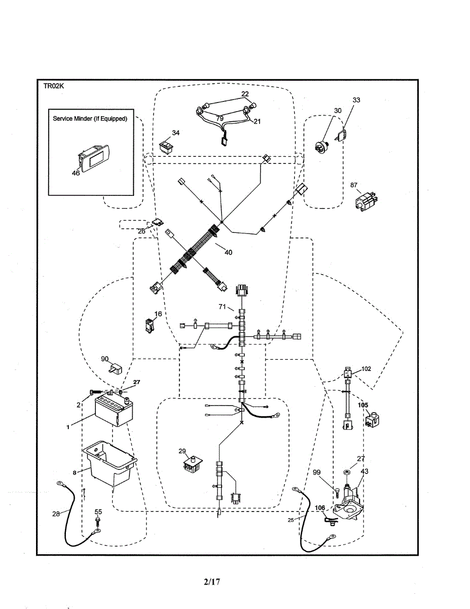Wire harness assembly for riding mowers and lawn tractors. Transmits electrical currents throughout the machine. Replace if wires are frayed or damaged.