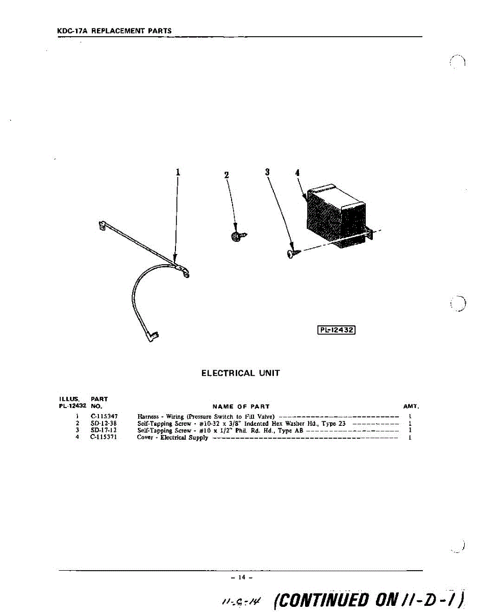 Parts for Kitchenaid KDC57A: 14 - Electrical Parts