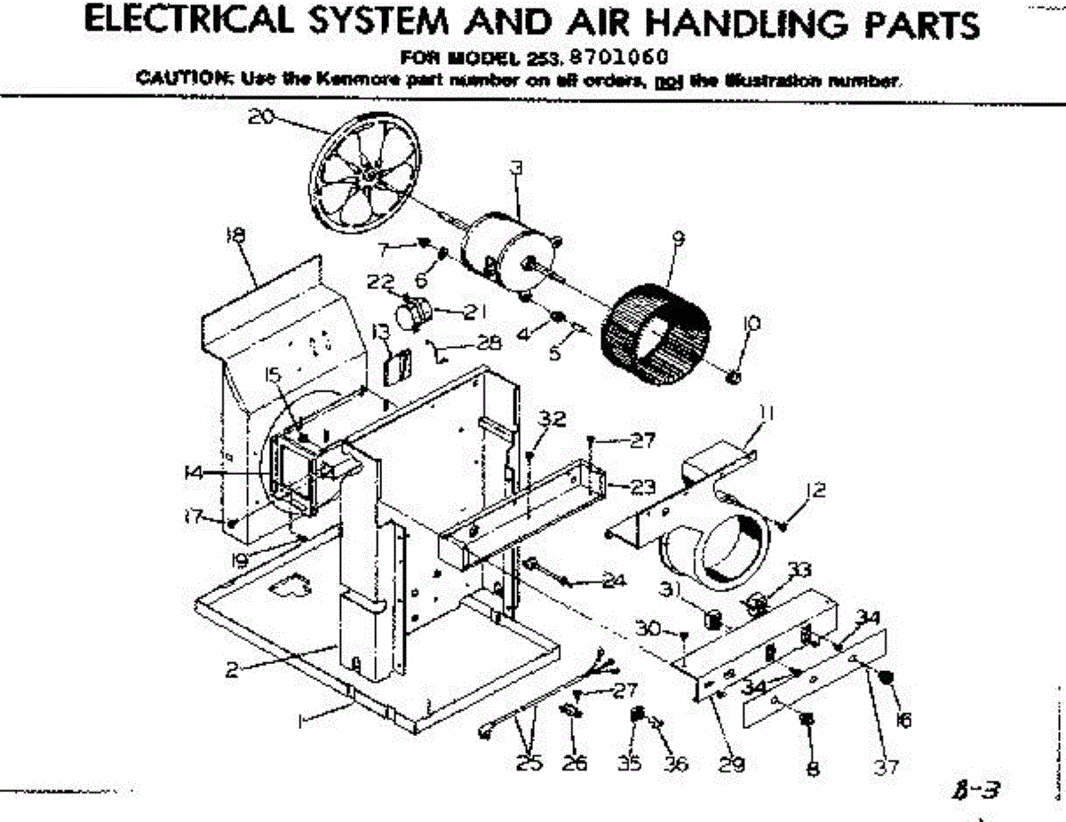 Parts for Kenmore 253.8701060 (2538701060, 253 8701060): Electrical System And Air Handling Parts