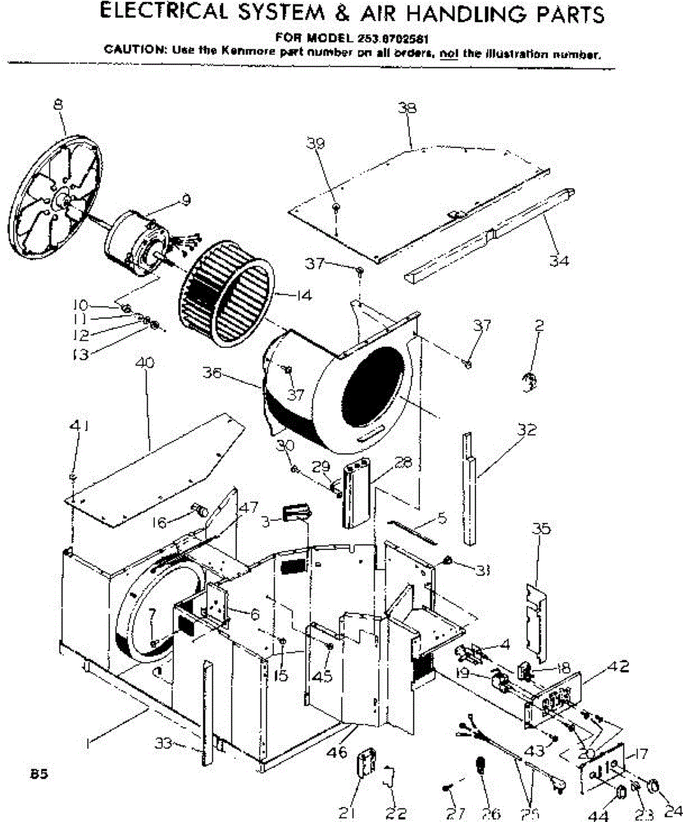 Parts for Kenmore 253.8702581 (2538702581, 253 8702581): Electrical System And Air Handling Parts