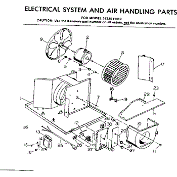 Parts for Kenmore 253.8711410 (2538711410, 253 8711410): Electrical System & Air Handling Parts